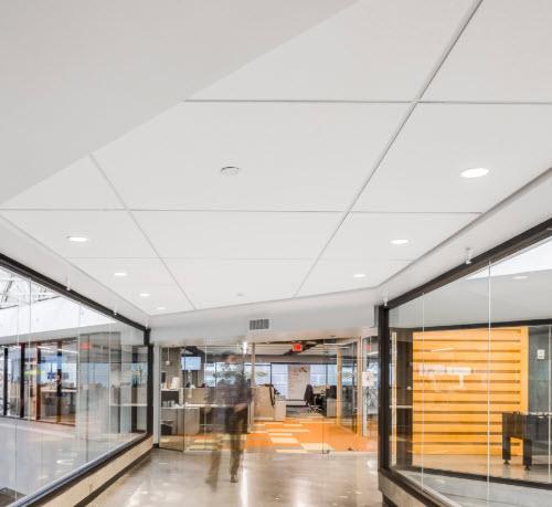 Rockfon Alaska® stone wool ceiling tiles are resistant to sagging, humidity, and fire, and come in a wide array of sizes and edges. With an NRC of up to 0.90 and CAC of up to 35, Alaska tiles are an excellent choice for diverse interior applications where high sound absorption is needed. These elegant, bright white tiles feature a high light reflectance of 0.86, enhancing interior brightness and contributing to energy savings.
